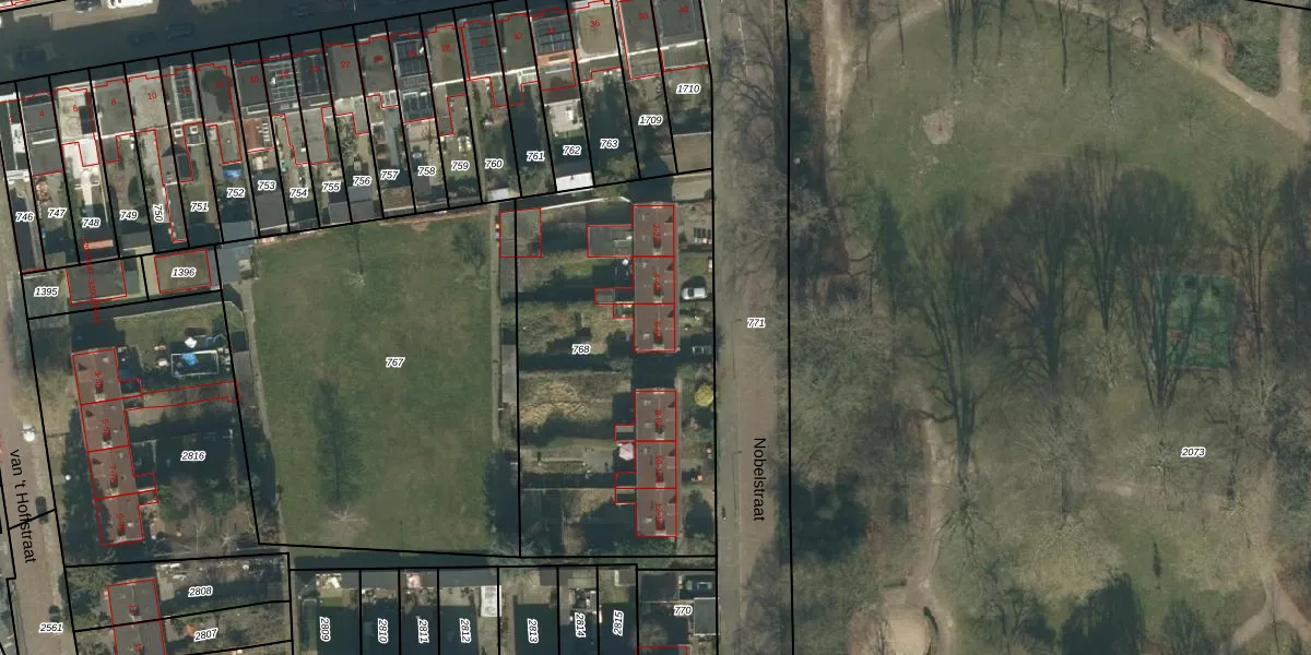 Het perceel waarop Nobelstraat 6 staat heeft een oppervlakte van 1710 m². Dit is een zeer groot perceel. De perceeloppervlakte wordt geregistreerd door het Kadaster. Gedetailleerde informatie over de maten van dit perceel kunt u vinden in het rapport Kadastrale kaart met maatvoering van Nobelstraat 6.