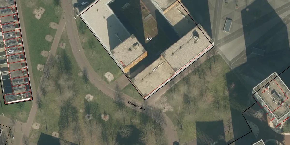 Het perceel waarop Nonnenveld 125 staat heeft een oppervlakte van 4428 m². Dit is een zeer groot perceel. De perceeloppervlakte wordt geregistreerd door het Kadaster. Gedetailleerde informatie over de maten van dit perceel kunt u vinden in het rapport Kadastrale kaart met maatvoering van Nonnenveld 125.
