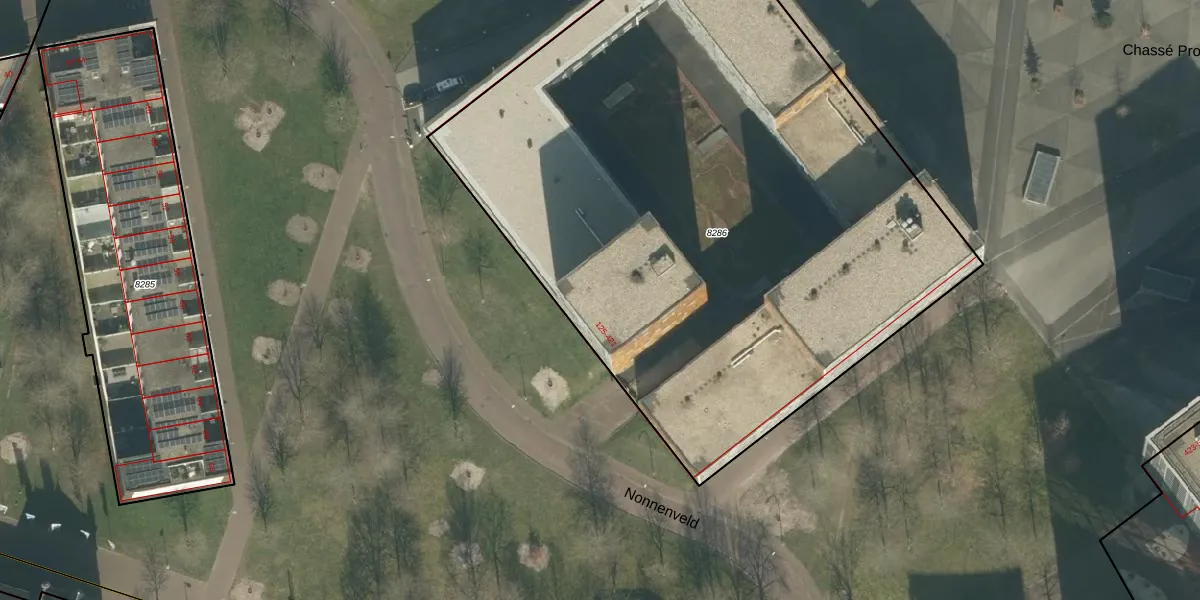 Het perceel waarop Nonnenveld 147 staat heeft een oppervlakte van 4428 m². Dit is een zeer groot perceel. De perceeloppervlakte wordt geregistreerd door het Kadaster. Gedetailleerde informatie over de maten van dit perceel kunt u vinden in het rapport Kadastrale kaart met maatvoering van Nonnenveld 147.