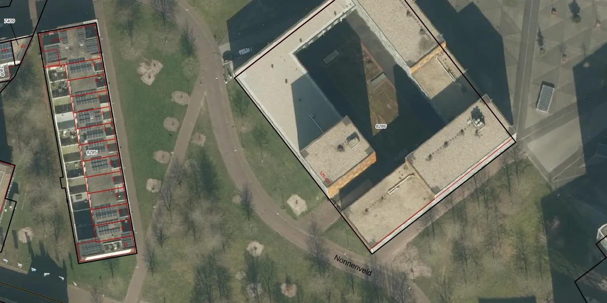 Het perceel waarop Nonnenveld 161 staat heeft een oppervlakte van 4428 m². Dit is een zeer groot perceel. De perceeloppervlakte wordt geregistreerd door het Kadaster. Gedetailleerde informatie over de maten van dit perceel kunt u vinden in het rapport Kadastrale kaart met maatvoering van Nonnenveld 161.