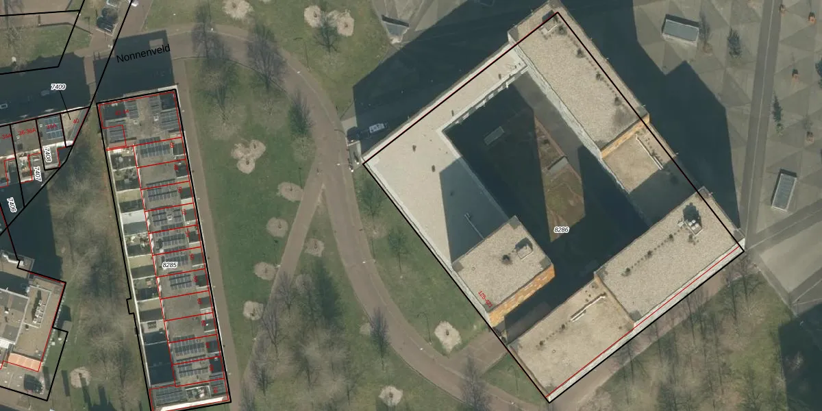 Het perceel waarop Nonnenveld 241 staat heeft een oppervlakte van 4428 m². Dit is een zeer groot perceel. De perceeloppervlakte wordt geregistreerd door het Kadaster. Gedetailleerde informatie over de maten van dit perceel kunt u vinden in het rapport Kadastrale kaart met maatvoering van Nonnenveld 241.