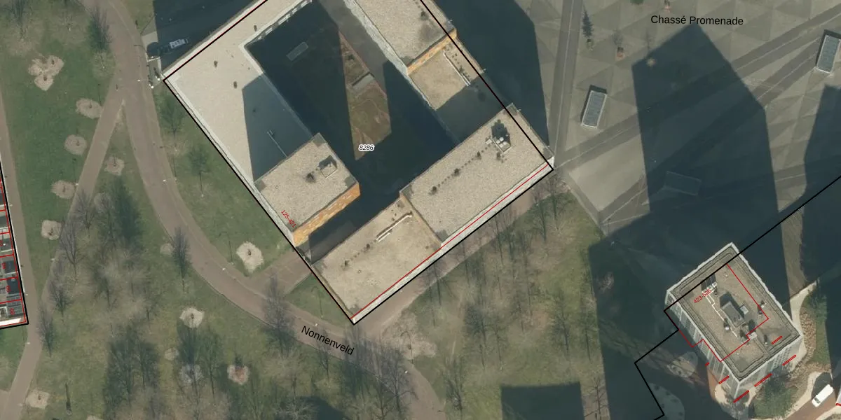 Het perceel waarop Nonnenveld 293 staat heeft een oppervlakte van 4428 m². Dit is een zeer groot perceel. De perceeloppervlakte wordt geregistreerd door het Kadaster. Gedetailleerde informatie over de maten van dit perceel kunt u vinden in het rapport Kadastrale kaart met maatvoering van Nonnenveld 293.