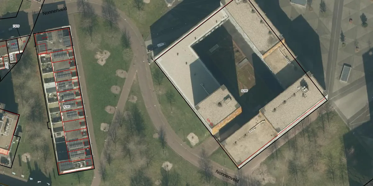 Het perceel waarop Nonnenveld 365 staat heeft een oppervlakte van 4428 m². Dit is een zeer groot perceel. De perceeloppervlakte wordt geregistreerd door het Kadaster. Gedetailleerde informatie over de maten van dit perceel kunt u vinden in het rapport Kadastrale kaart met maatvoering van Nonnenveld 365.