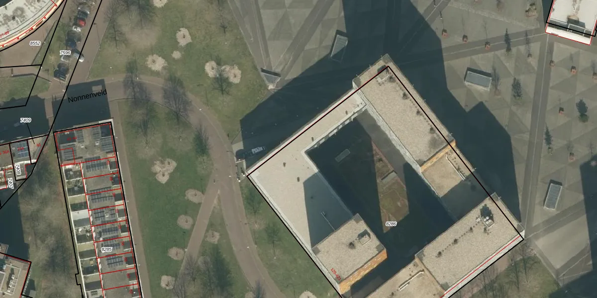 Het perceel waarop Nonnenveld 411 staat heeft een oppervlakte van 4428 m². Dit is een zeer groot perceel. De perceeloppervlakte wordt geregistreerd door het Kadaster. Gedetailleerde informatie over de maten van dit perceel kunt u vinden in het rapport Kadastrale kaart met maatvoering van Nonnenveld 411.