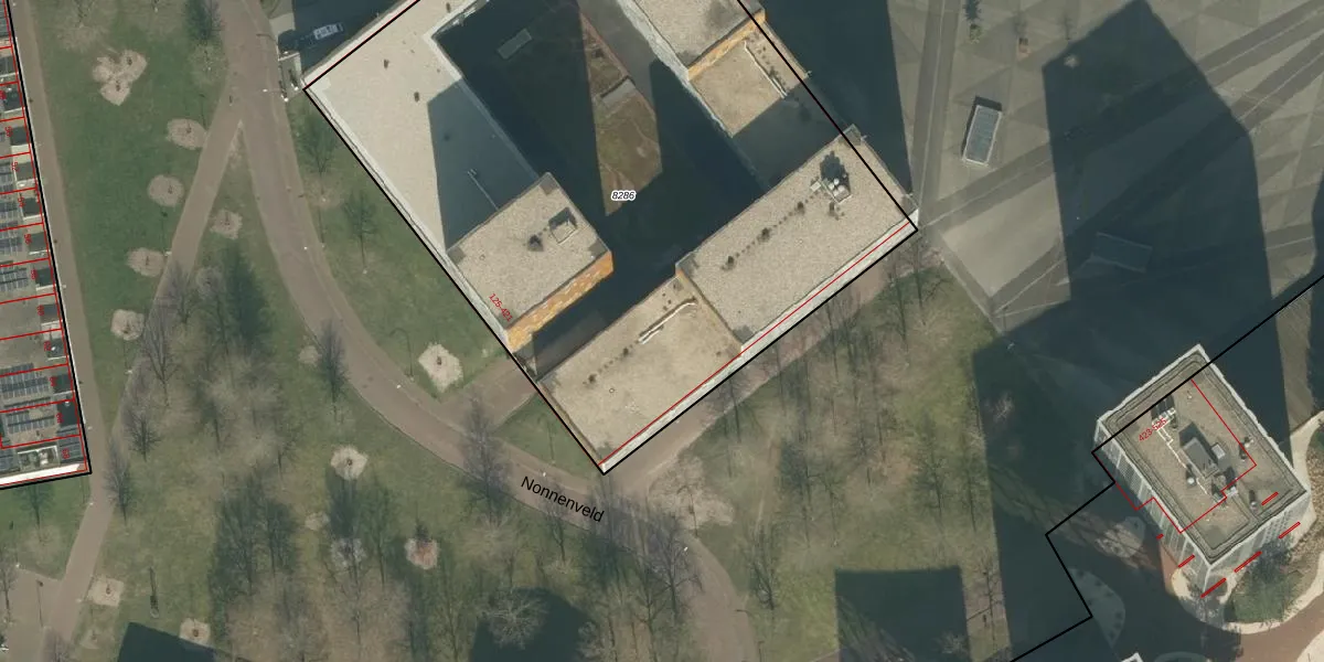 Het perceel waarop Nonnenveld 413 staat heeft een oppervlakte van 4428 m². Dit is een zeer groot perceel. De perceeloppervlakte wordt geregistreerd door het Kadaster. Gedetailleerde informatie over de maten van dit perceel kunt u vinden in het rapport Kadastrale kaart met maatvoering van Nonnenveld 413.