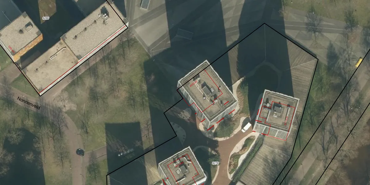 Het perceel waarop Nonnenveld 445 staat heeft een oppervlakte van 1,0 ha. Dit is een zeer groot perceel. De perceeloppervlakte wordt geregistreerd door het Kadaster. Gedetailleerde informatie over de maten van dit perceel kunt u vinden in het rapport Kadastrale kaart met maatvoering van Nonnenveld 445.