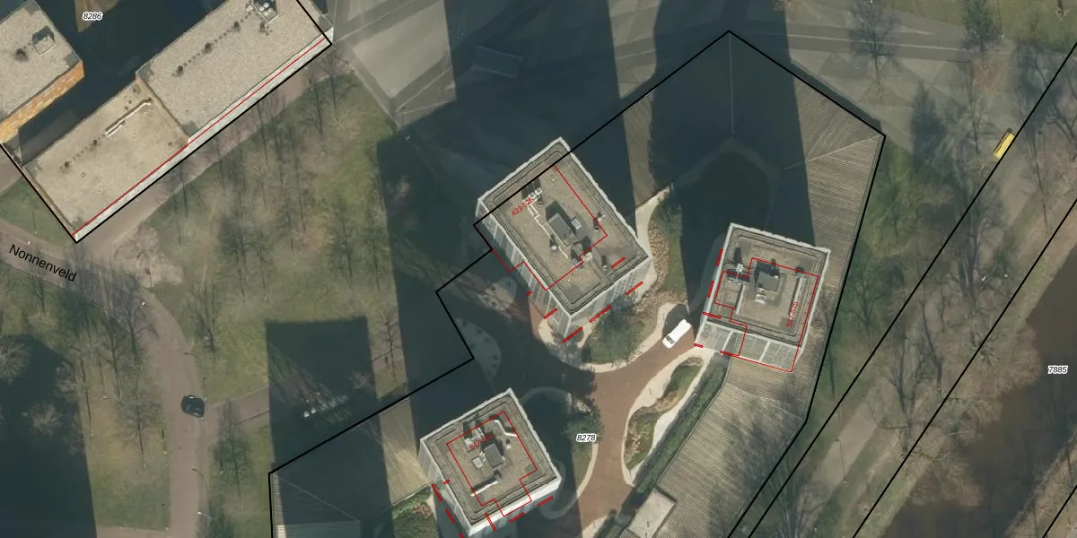 Het perceel waarop Nonnenveld 485 staat heeft een oppervlakte van 1,0 ha. Dit is een zeer groot perceel. De perceeloppervlakte wordt geregistreerd door het Kadaster. Gedetailleerde informatie over de maten van dit perceel kunt u vinden in het rapport Kadastrale kaart met maatvoering van Nonnenveld 485.
