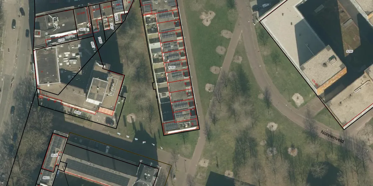 Het perceel waarop Nonnenveld 62 staat heeft een oppervlakte van 1513 m². Dit is een zeer groot perceel. De perceeloppervlakte wordt geregistreerd door het Kadaster. Gedetailleerde informatie over de maten van dit perceel kunt u vinden in het rapport Kadastrale kaart met maatvoering van Nonnenveld 62.