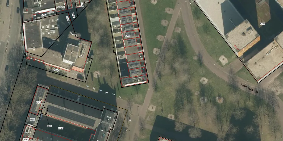 Het perceel waarop Nonnenveld 66 staat heeft een oppervlakte van 1513 m². Dit is een zeer groot perceel. De perceeloppervlakte wordt geregistreerd door het Kadaster. Gedetailleerde informatie over de maten van dit perceel kunt u vinden in het rapport Kadastrale kaart met maatvoering van Nonnenveld 66.