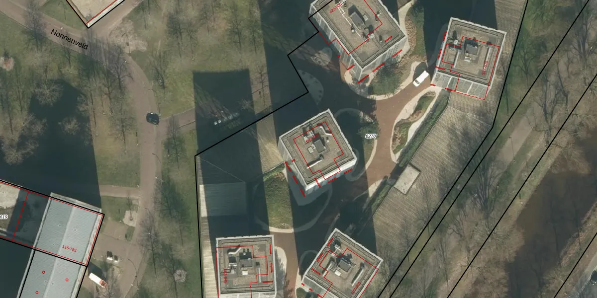 Het perceel waarop Nonnenveld 663 staat heeft een oppervlakte van 1,0 ha. Dit is een zeer groot perceel. De perceeloppervlakte wordt geregistreerd door het Kadaster. Gedetailleerde informatie over de maten van dit perceel kunt u vinden in het rapport Kadastrale kaart met maatvoering van Nonnenveld 663.