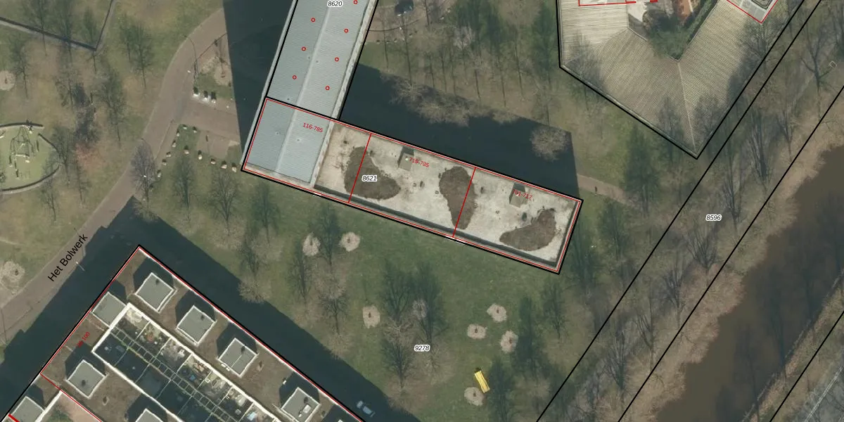 Het adres is gelegen op perceel 8621 in de sectie B en de kadastrale gemeente Breda. De kadastrale aanduiding is aldus BDA00-B-8621. Het perceel is met 1461 m² relatief groot. Het gemiddelde ligt in de kadastrale gemeente Breda op 1060,06 m². Het grootste perceel in de kadastrale gemeente is 44,1 ha. Het kleinste perceel heeft een oppervlakte van 0 m². Op het perceel liggen in totaal 30 adressen. De laatste wijziging in het de Basisregistratie Kadaster (BRK) was op 20-10-2006.