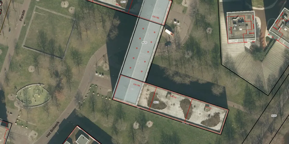 Het adres is gelegen op perceel 8620 in de sectie B en de kadastrale gemeente Breda. De kadastrale aanduiding is aldus BDA00-B-8620. De gemiddelde perceelgrootte in Breda is 1059,93 m². Dit perceel is kleiner: de perceeloppervlakte bedraagt 751 m². Het kleinste perceel in de kadastrale gemeente is 0 m² groot. De grootste perceeloppervlakte is 44,1 ha. Op het perceel liggen in totaal 24 adressen. De huidige grenzen van het perceel zijn digitaal in de Basisregistratie Kadaster (BRK) geregistreerd op 20-10-2006.