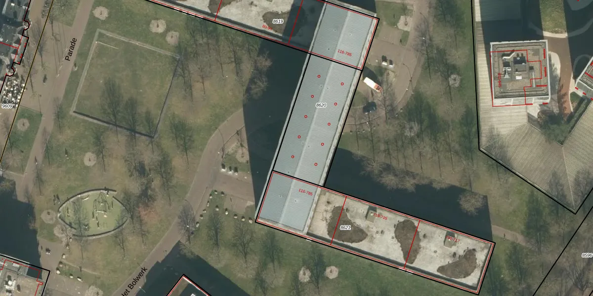Het adres is gelegen op perceel 8620 in de sectie B en de kadastrale gemeente Breda. De kadastrale aanduiding is aldus BDA00-B-8620. De gemiddelde perceelgrootte in Breda is 1059,13 m². Dit perceel is kleiner: de perceeloppervlakte bedraagt 751 m². Het kleinste perceel in de kadastrale gemeente is 0 m² groot. De grootste perceeloppervlakte is 44,1 ha. Op het perceel liggen in totaal 24 adressen. De huidige grenzen van het perceel zijn digitaal in de Basisregistratie Kadaster (BRK) geregistreerd op 20-10-2006.