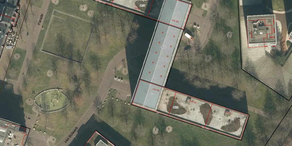 Het adres is gelegen op perceel 8620 in de sectie B en de kadastrale gemeente Breda. De kadastrale aanduiding is aldus BDA00-B-8620. De gemiddelde perceelgrootte in Breda is 1059,06 m². Dit perceel is kleiner: de perceeloppervlakte bedraagt 751 m². Het kleinste perceel in de kadastrale gemeente is 0 m² groot. De grootste perceeloppervlakte is 44,1 ha. Op het perceel liggen in totaal 24 adressen. De huidige grenzen van het perceel zijn digitaal in de Basisregistratie Kadaster (BRK) geregistreerd op 20-10-2006.