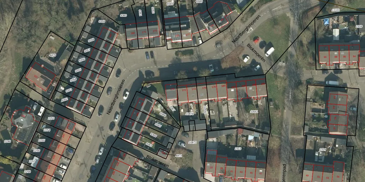 Het perceel waarop Noortberghmoeren 172 staat heeft een oppervlakte van 310 m². Dit is een groot perceel. De perceeloppervlakte wordt geregistreerd door het Kadaster. Gedetailleerde informatie over de maten van dit perceel kunt u vinden in het rapport Kadastrale kaart met maatvoering van Noortberghmoeren 172.