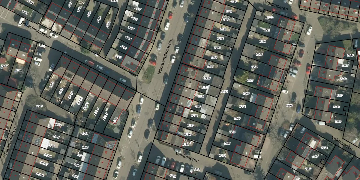 Gebruik de zoekbalk of klik op een perceel voor informatie over de adressen binnen dit perceel.