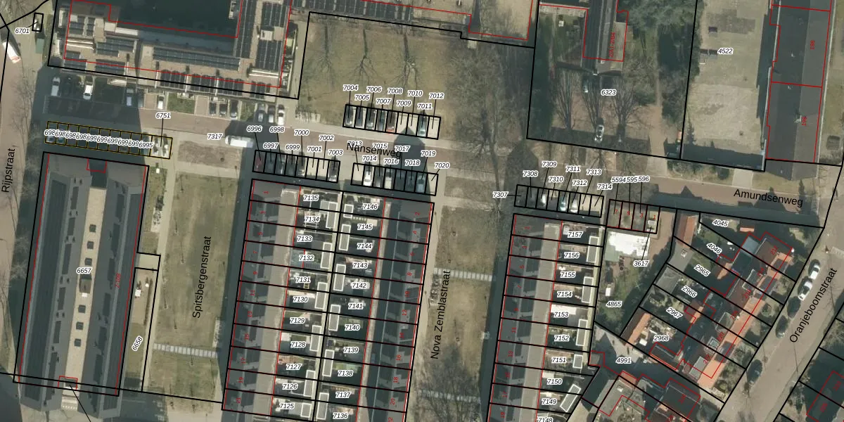 Gebruik de zoekbalk of klik op een perceel voor informatie over de adressen binnen dit perceel.
