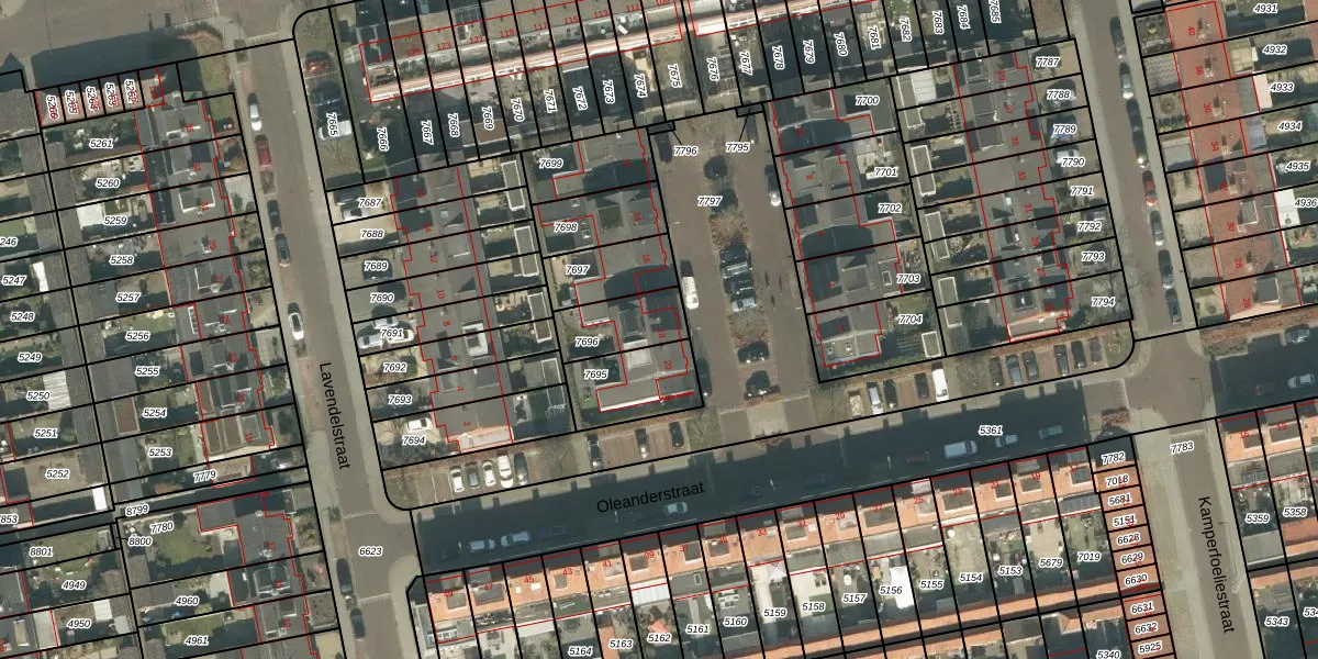 Oleanderstraat 18 is gelegen op kadastraal perceel BDA00E7696. Deze kadastrale aanduiding is uniek en wordt gebruikt door het Kadaster om eigendomsrechten en andere zakelijke rechten vast te leggen. Het perceel maakt onderdeel uit van de kadastrale gemeente Breda.