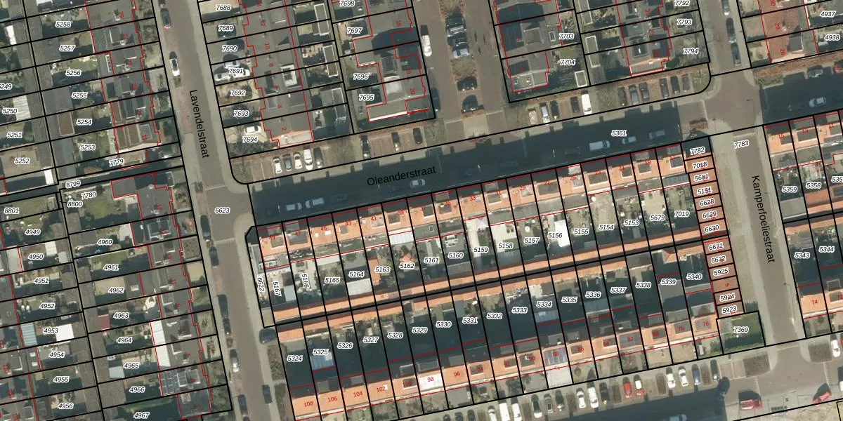 Het perceel waarop Oleanderstraat 37 staat heeft een oppervlakte van 143 m². Dit is een middelgroot perceel. De perceeloppervlakte wordt geregistreerd door het Kadaster. Gedetailleerde informatie over de maten van dit perceel kunt u vinden in het rapport Kadastrale kaart met maatvoering van Oleanderstraat 37.