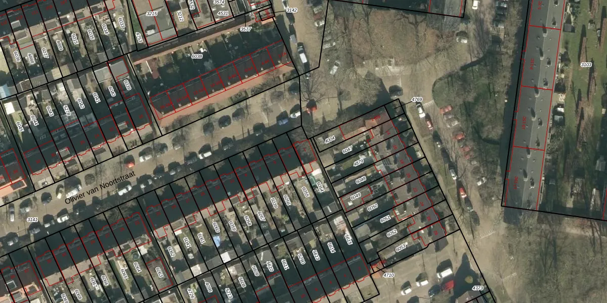 Olivier van Noortstraat 1 is gelegen op kadastraal perceel PCH00I6054. Deze kadastrale aanduiding is uniek en wordt gebruikt door het Kadaster om eigendomsrechten en andere zakelijke rechten vast te leggen. Het perceel maakt onderdeel uit van de kadastrale gemeente Princenhage.