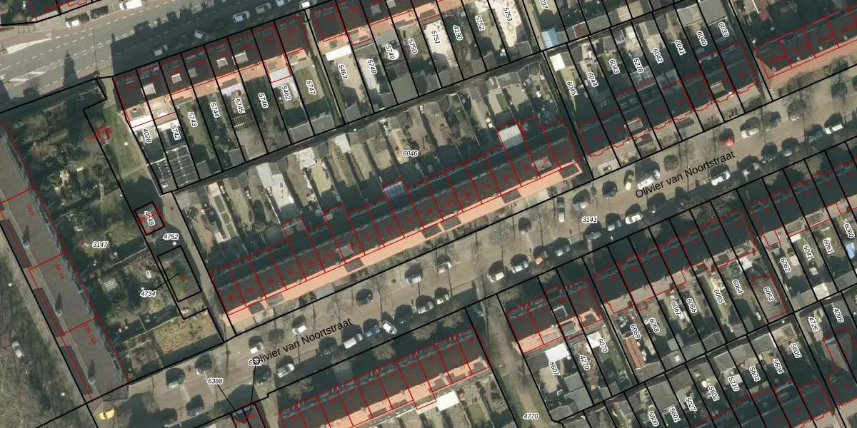 Het perceel waarop Olivier van Noortstraat 48 staat heeft een oppervlakte van 3201 m². Dit is een zeer groot perceel. De perceeloppervlakte wordt geregistreerd door het Kadaster. Gedetailleerde informatie over de maten van dit perceel kunt u vinden in het rapport Kadastrale kaart met maatvoering van Olivier van Noortstraat 48.