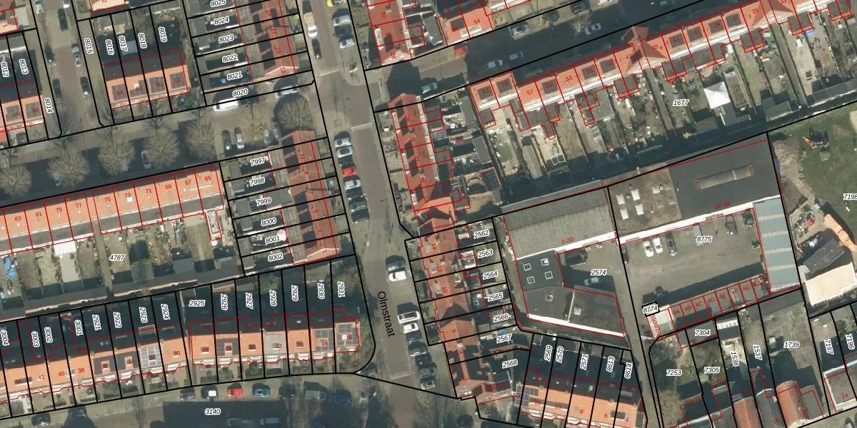 Het perceel waarop Olmstraat 16 staat heeft een oppervlakte van 4092 m². Dit is een zeer groot perceel. De perceeloppervlakte wordt geregistreerd door het Kadaster. Gedetailleerde informatie over de maten van dit perceel kunt u vinden in het rapport Kadastrale kaart met maatvoering van Olmstraat 16.
