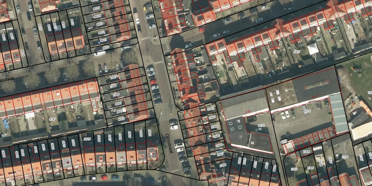 Olmstraat 18 is gelegen op kadastraal perceel BDA00E1677. Deze kadastrale aanduiding is uniek en wordt gebruikt door het Kadaster om eigendomsrechten en andere zakelijke rechten vast te leggen. Het perceel maakt onderdeel uit van de kadastrale gemeente Breda.