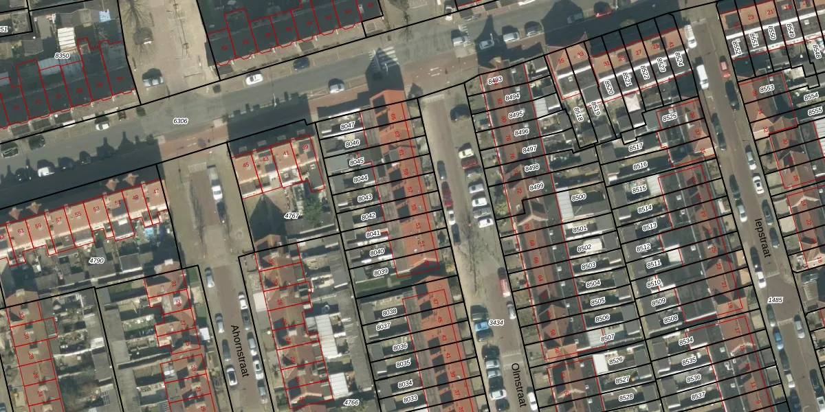 Olmstraat 55 is gelegen op kadastraal perceel BDA00E8042. Deze kadastrale aanduiding is uniek en wordt gebruikt door het Kadaster om eigendomsrechten en andere zakelijke rechten vast te leggen. Het perceel maakt onderdeel uit van de kadastrale gemeente Breda.