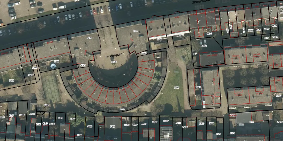 Omegaplein 35 is gelegen op kadastraal perceel BDA00B8094. Deze kadastrale aanduiding is uniek en wordt gebruikt door het Kadaster om eigendomsrechten en andere zakelijke rechten vast te leggen. Het perceel maakt onderdeel uit van de kadastrale gemeente Breda.