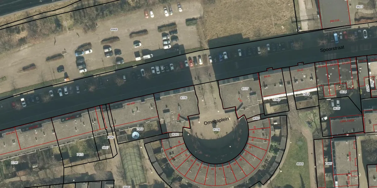 Omegaplein 56 is gelegen op kadastraal perceel BDA00B8776. Deze kadastrale aanduiding is uniek en wordt gebruikt door het Kadaster om eigendomsrechten en andere zakelijke rechten vast te leggen. Het perceel maakt onderdeel uit van de kadastrale gemeente Breda.