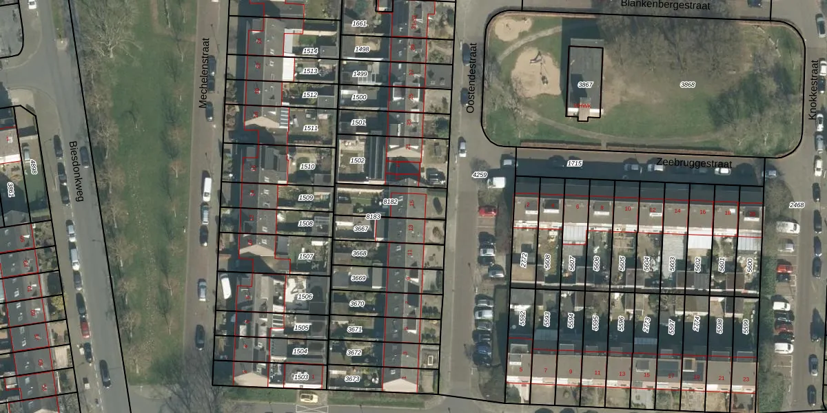 Oostendestraat 15 is gelegen op kadastraal perceel BDA00G8182. Deze kadastrale aanduiding is uniek en wordt gebruikt door het Kadaster om eigendomsrechten en andere zakelijke rechten vast te leggen. Het perceel maakt onderdeel uit van de kadastrale gemeente Breda.