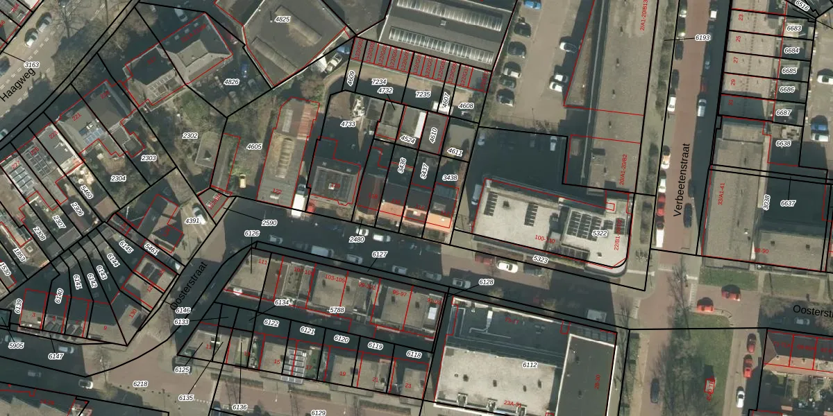 Oosterstraat 114 is gelegen op kadastraal perceel PCH00I3437. Deze kadastrale aanduiding is uniek en wordt gebruikt door het Kadaster om eigendomsrechten en andere zakelijke rechten vast te leggen. Het perceel maakt onderdeel uit van de kadastrale gemeente Princenhage.