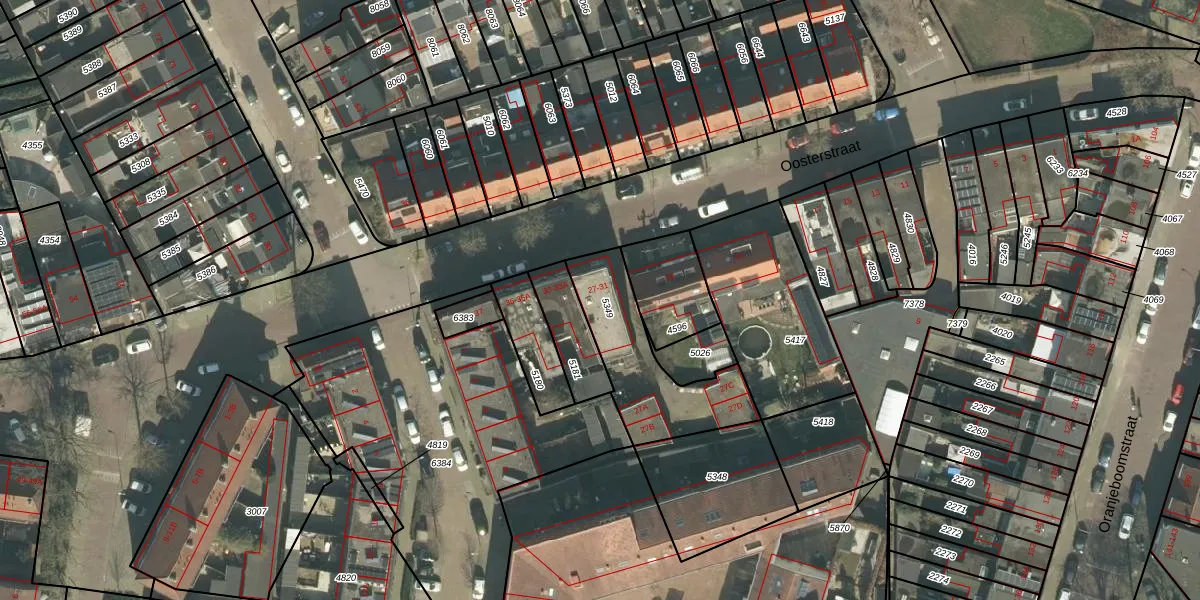 Oosterstraat 29 is gelegen op kadastraal perceel PCH00I5349. Deze kadastrale aanduiding is uniek en wordt gebruikt door het Kadaster om eigendomsrechten en andere zakelijke rechten vast te leggen. Het perceel maakt onderdeel uit van de kadastrale gemeente Princenhage.