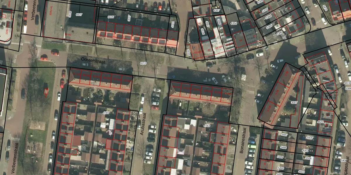 Het perceel waarop Oosterstraat 59 staat heeft een oppervlakte van 3265 m². Dit is een zeer groot perceel. De perceeloppervlakte wordt geregistreerd door het Kadaster. Gedetailleerde informatie over de maten van dit perceel kunt u vinden in het rapport Kadastrale kaart met maatvoering van Oosterstraat 59.