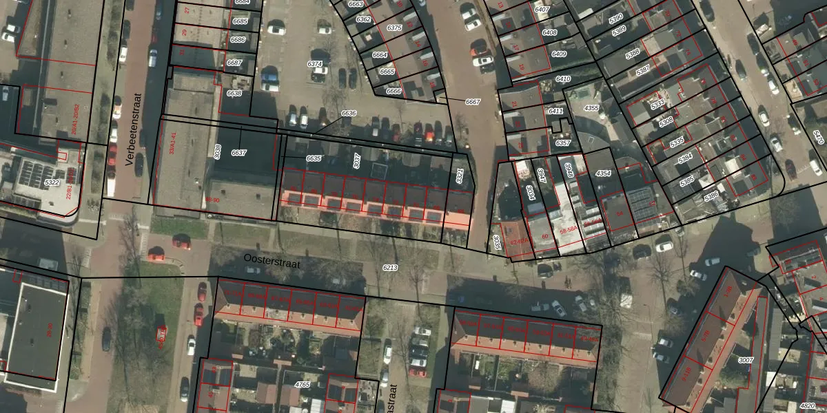 Oosterstraat 70 is gelegen op kadastraal perceel PCH00I3037. Deze kadastrale aanduiding is uniek en wordt gebruikt door het Kadaster om eigendomsrechten en andere zakelijke rechten vast te leggen. Het perceel maakt onderdeel uit van de kadastrale gemeente Princenhage.