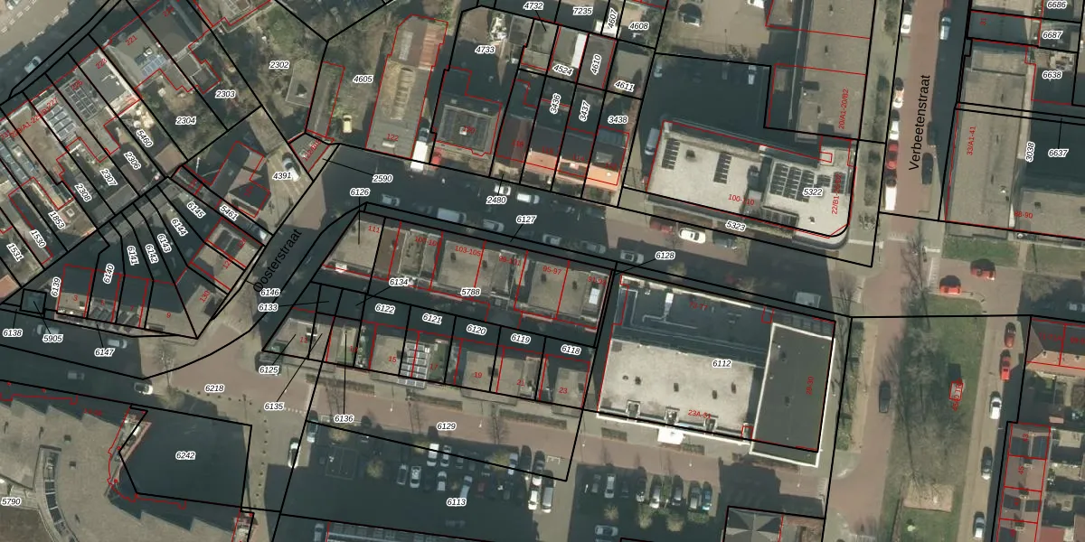 Het perceel waarop Oosterstraat 95 staat heeft een oppervlakte van 633 m². Dit is een groot perceel. De perceeloppervlakte wordt geregistreerd door het Kadaster. Gedetailleerde informatie over de maten van dit perceel kunt u vinden in het rapport Kadastrale kaart met maatvoering van Oosterstraat 95.