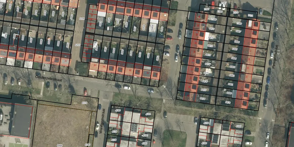 Gebruik de zoekbalk of klik op een perceel voor informatie over de adressen binnen dit perceel.