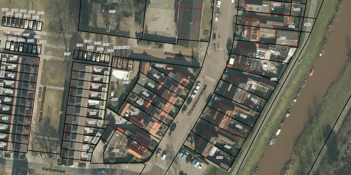 Gebruik de zoekbalk of klik op een perceel voor informatie over de adressen binnen dit perceel.