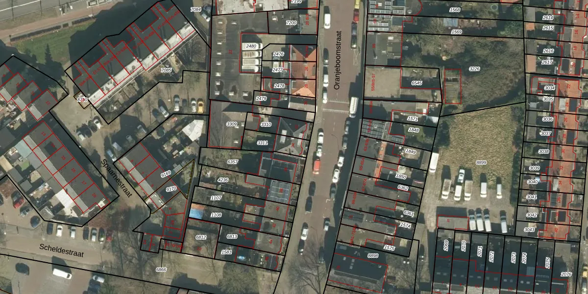 Oranjeboomstraat 34 is gelegen op kadastraal perceel BDA00E3311. Deze kadastrale aanduiding is uniek en wordt gebruikt door het Kadaster om eigendomsrechten en andere zakelijke rechten vast te leggen. Het perceel maakt onderdeel uit van de kadastrale gemeente Breda.