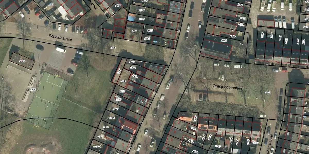 Gebruik de zoekbalk of klik op een perceel voor informatie over de adressen binnen dit perceel.
