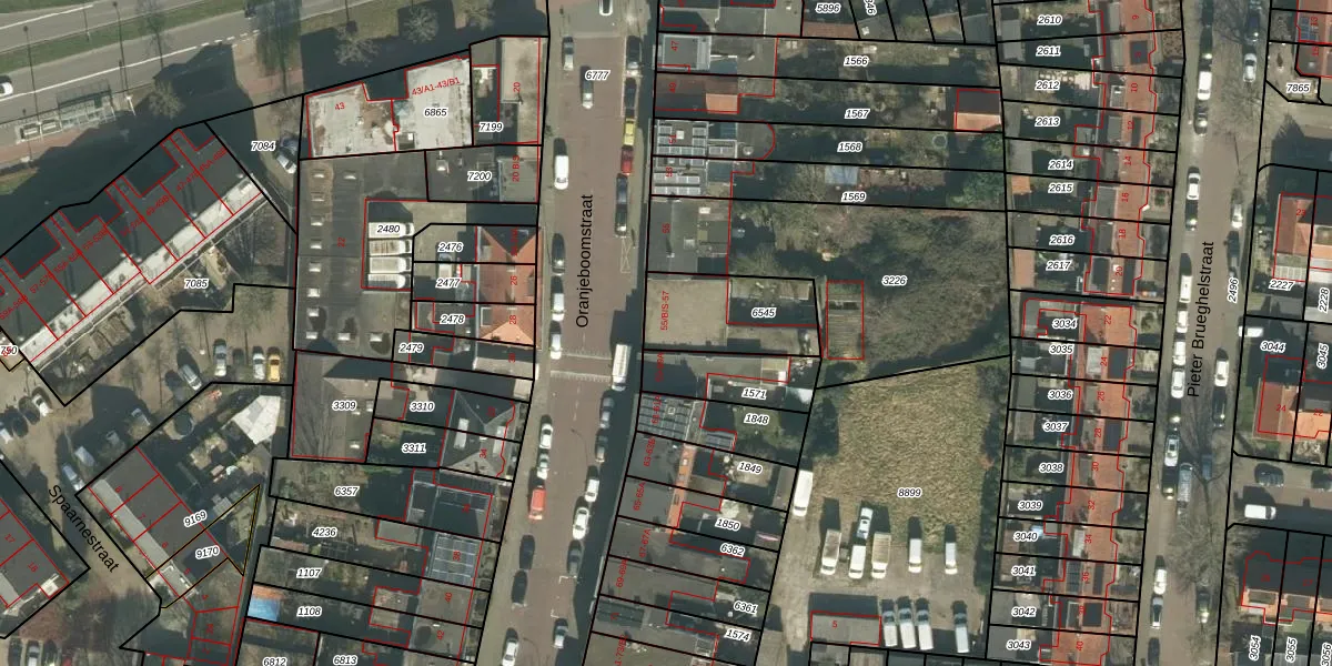 Oranjeboomstraat 57 is gelegen op kadastraal perceel BDA00E6545. Deze kadastrale aanduiding is uniek en wordt gebruikt door het Kadaster om eigendomsrechten en andere zakelijke rechten vast te leggen. Het perceel maakt onderdeel uit van de kadastrale gemeente Breda.