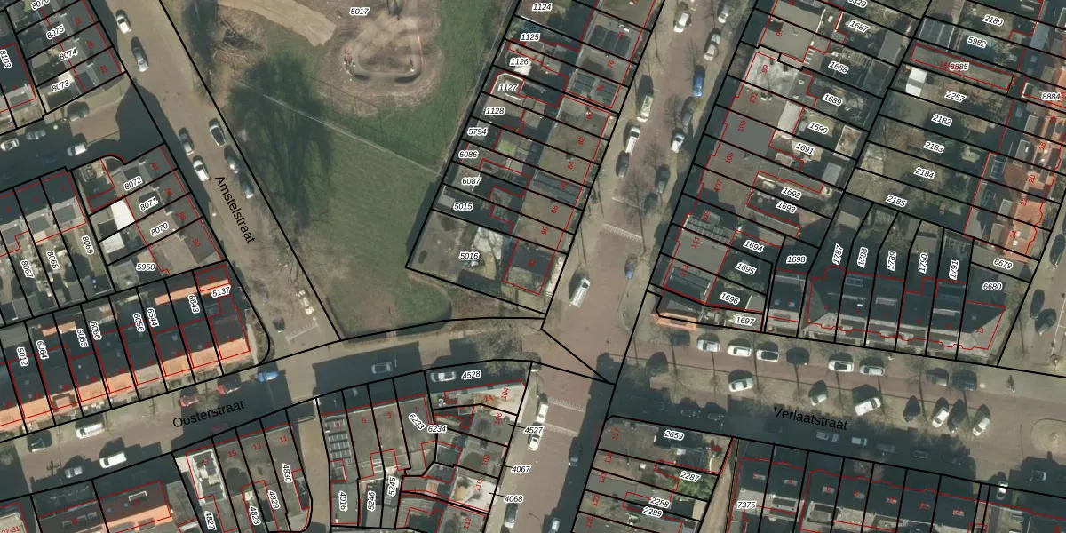 Gebruik de zoekbalk of klik op een perceel voor informatie over de adressen binnen dit perceel.