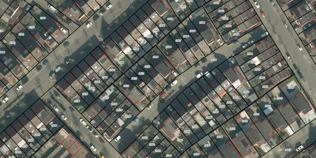Het perceel waarop Ossenblok 14 staat heeft een oppervlakte van 132 m². Dit is een middelgroot perceel. De perceeloppervlakte wordt geregistreerd door het Kadaster. Gedetailleerde informatie over de maten van dit perceel kunt u vinden in het rapport Kadastrale kaart met maatvoering van Ossenblok 14.