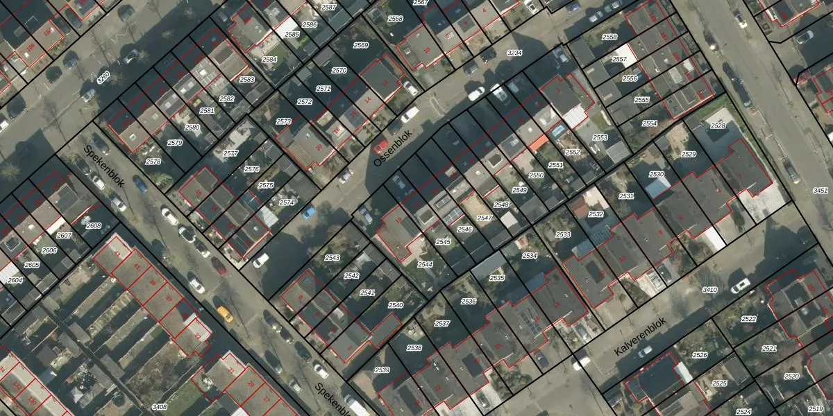 Gebruik de zoekbalk of klik op een perceel voor informatie over de adressen binnen dit perceel.