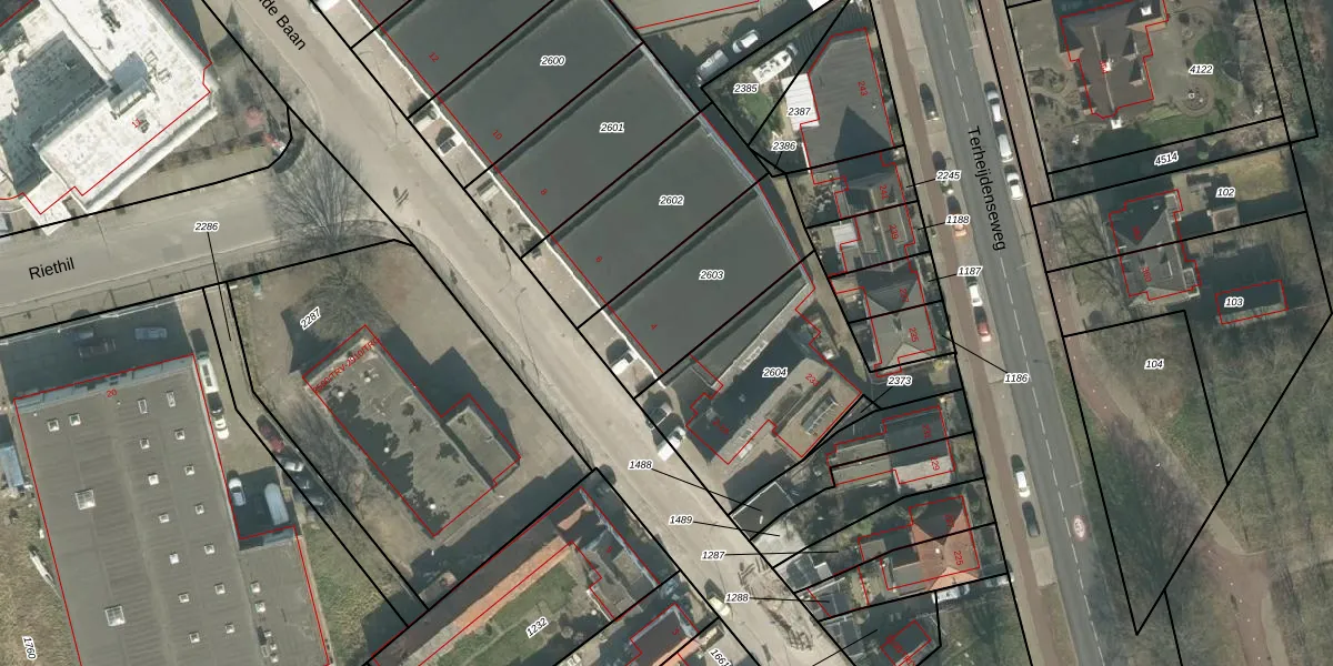 Gebruik de zoekbalk of klik op een perceel voor informatie over de adressen binnen dit perceel.