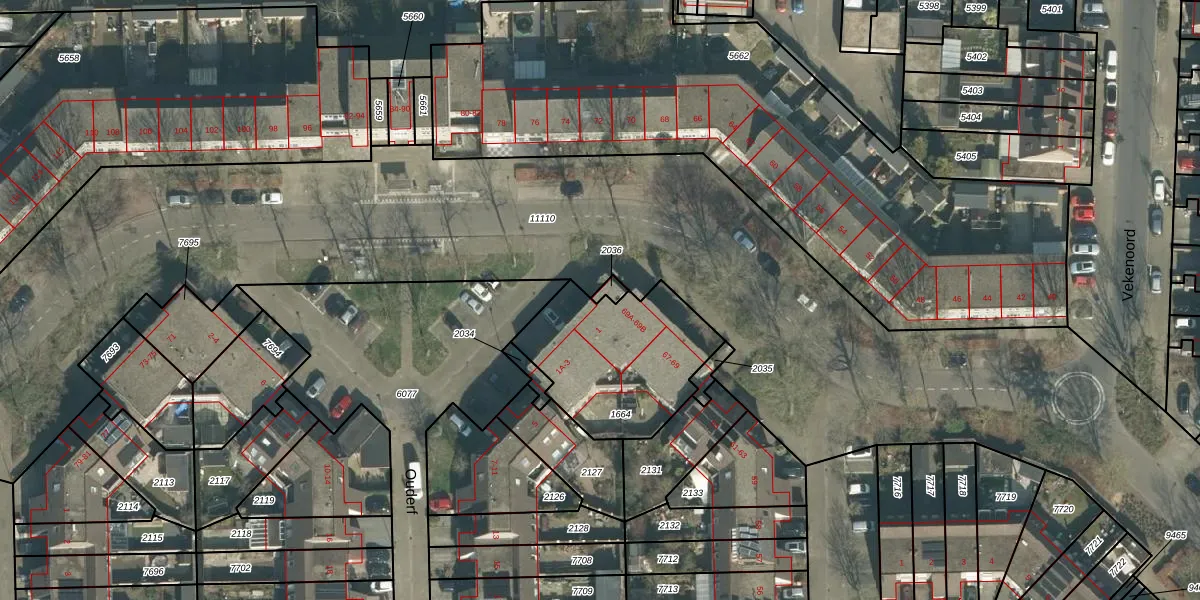 Het perceel waarop Ouderf 1 staat heeft een oppervlakte van 15 m². Dit is een klein perceel. De perceeloppervlakte wordt geregistreerd door het Kadaster. Gedetailleerde informatie over de maten van dit perceel kunt u vinden in het rapport Kadastrale kaart met maatvoering van Ouderf 1.