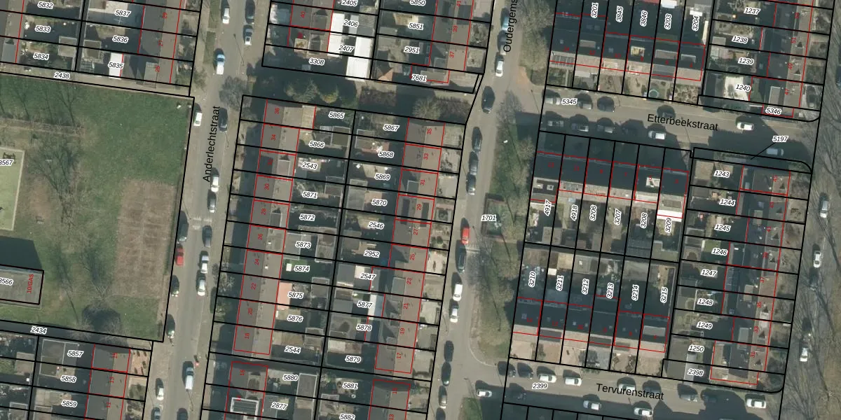 Het perceel waarop Oudergemstraat 29 staat heeft een oppervlakte van 159 m². Dit is een middelgroot perceel. De perceeloppervlakte wordt geregistreerd door het Kadaster. Gedetailleerde informatie over de maten van dit perceel kunt u vinden in het rapport Kadastrale kaart met maatvoering van Oudergemstraat 29.
