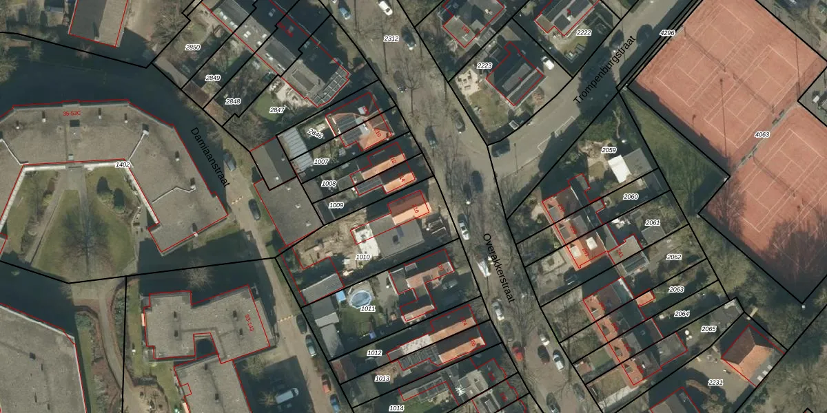 Overakkerstraat 216 is gelegen op kadastraal perceel GNK02M1010. Deze kadastrale aanduiding is uniek en wordt gebruikt door het Kadaster om eigendomsrechten en andere zakelijke rechten vast te leggen. Het perceel maakt onderdeel uit van de kadastrale gemeente Ginneken.