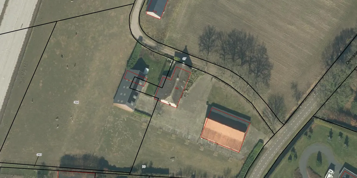 Het perceel waarop Overaseweg 186 staat heeft een oppervlakte van 3630 m². Dit is een zeer groot perceel. De perceeloppervlakte wordt geregistreerd door het Kadaster. Gedetailleerde informatie over de maten van dit perceel kunt u vinden in het rapport Kadastrale kaart met maatvoering van Overaseweg 186.