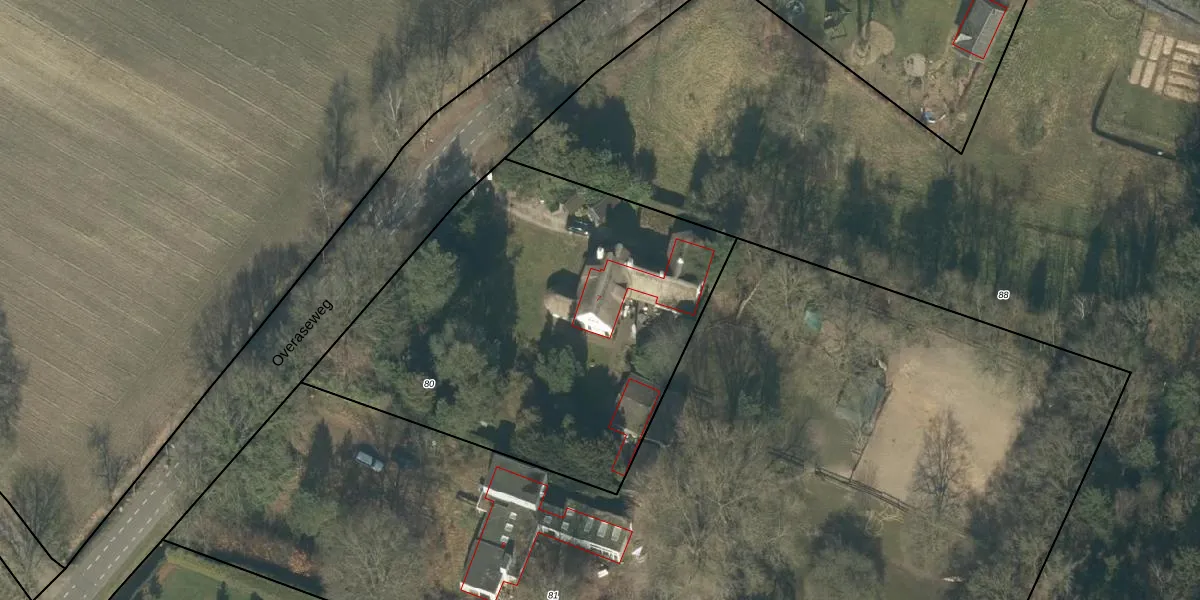 Overaseweg 7 is gelegen op kadastraal perceel PCH00T80. Deze kadastrale aanduiding is uniek en wordt gebruikt door het Kadaster om eigendomsrechten en andere zakelijke rechten vast te leggen. Het perceel maakt onderdeel uit van de kadastrale gemeente Princenhage.